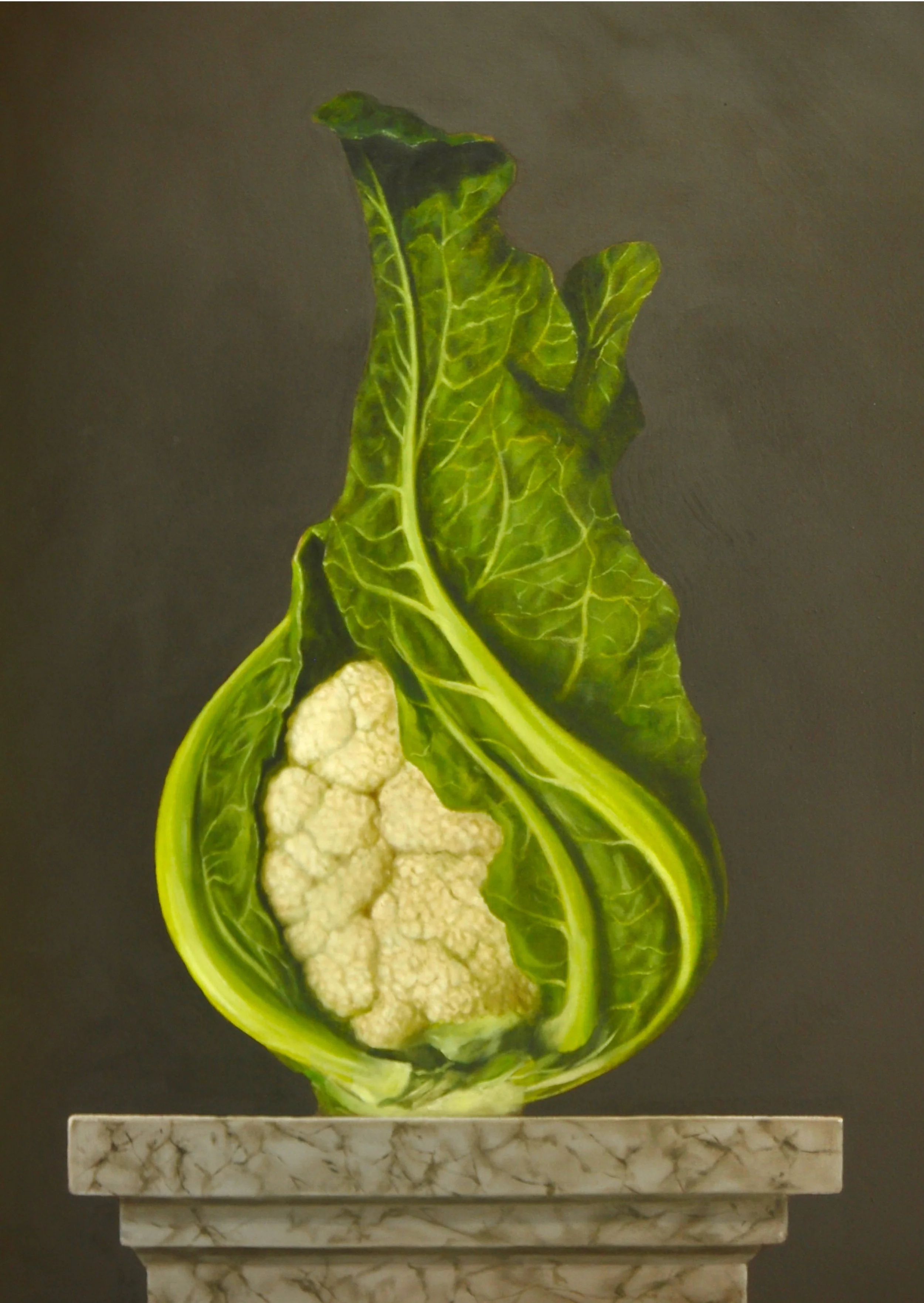 Cauliflower on a plinth. Oils on canvas.